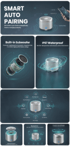 The lightweight and mini design makes this Bluetooth speaker easy to carry in bags, backpacks, or even your hand—perfect for travel and daily use.